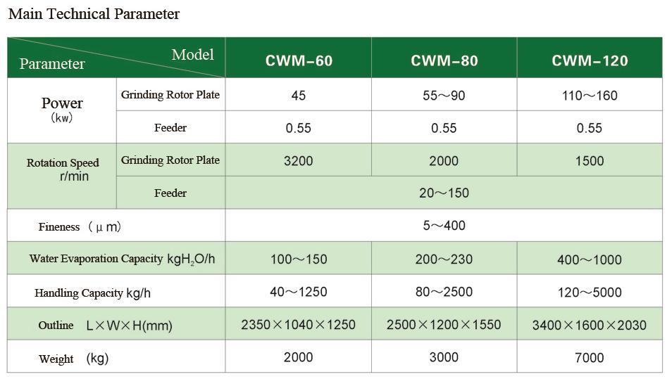 The grinding rotor is composed of several horizontal disks and vertical blades, these consist many stagger arranged crushing chambers. The air in the small chamber is elastic. Due to the impact of the air flow, the grinding chamber on the rotor tinily vibrate. The indoor sound wave of audible sound of 140 dB, and in some regions produce the atmospheric pressure difference of 0.025, which help the sonic jet-flow and vortex appear, and promote the mutual friction and impact between materials into powder. The special-designed rotor of this model equipped with 2 blowers. The lower blower produce jet stream to suck and speed up the material. The upper blower is the main blower and deliver the material outside. There are many la