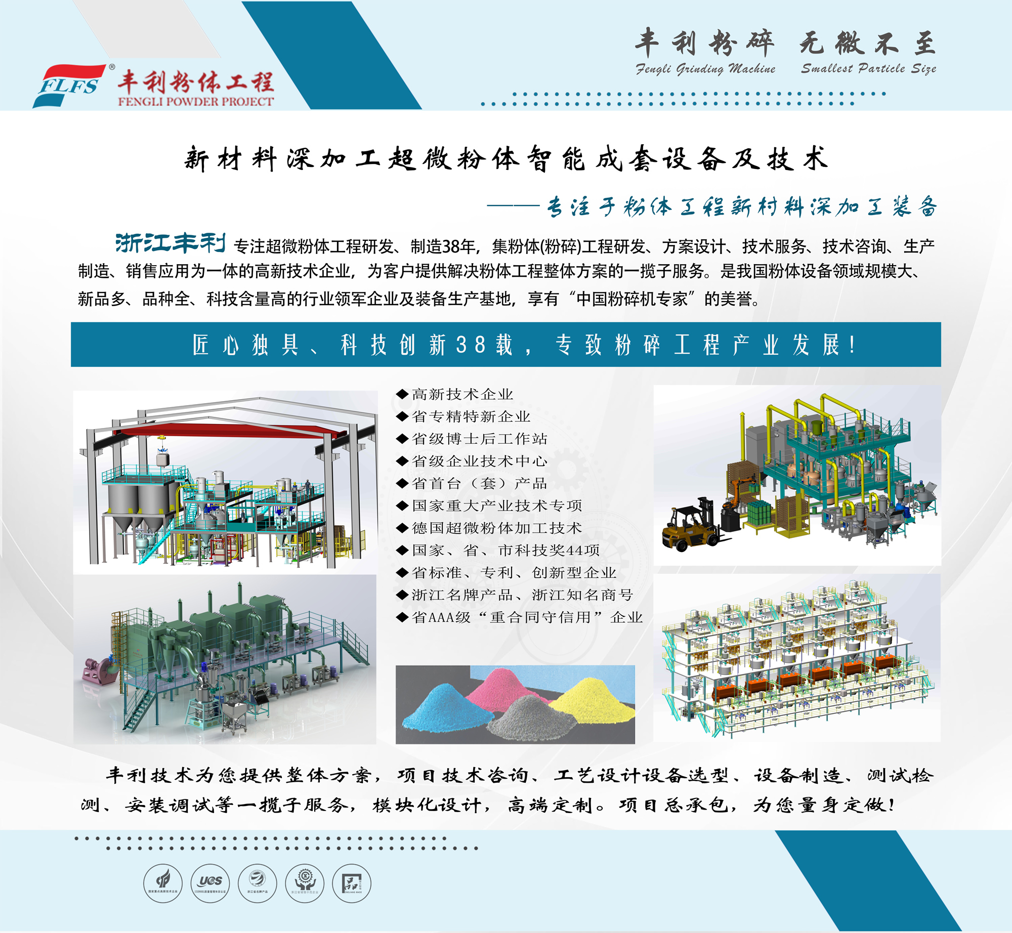 浙江博天堂网址专注超微粉体工程研发、制造38年,集粉体(粉碎)工程研发、方案设计、技术服务、技术咨询、生产制造、销售应用为一体的高新技术企业,为客户提供解决粉体工程整体方案的一揽子服务。是我国粉体设备领域规模大、新品多、品种全、科技含量高的行业领军企业及装备生产基地,享有“ 中国粉碎机专家”的美誉。